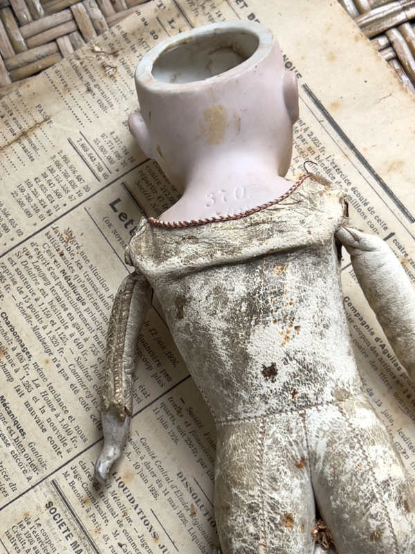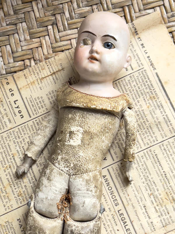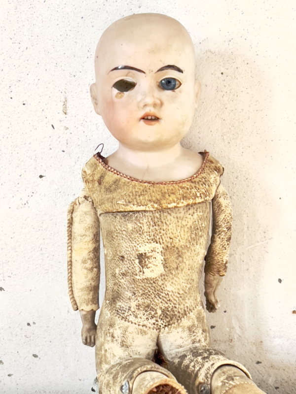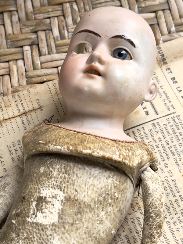 Een snoepje dit lederen antieke popje met biscuit porselein en hoofdje. Heeft een heel leven achter de rug: pure charme. Perfecte imperfectie.