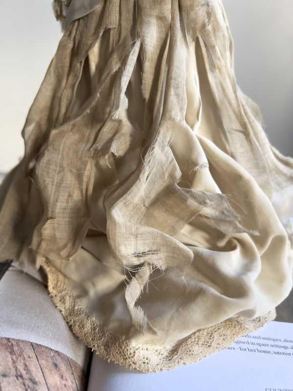 S & H in star: This logo is associated with both Simon & Halbig and Schoenau & Hoffmeister, two prominent German doll manufacturers from the early 20th century. Simon & Halbig: Founded in 1869, this company produced heads for many other manufacturers, including Kammer & Reinhardt. Their markings often included a six-pointed star with "S & H" or "Simon & Halbig" around it. Schoenau & Hoffmeister: This company, also known as Porzellanfabrik Burggrub, used a similar star and "S*H" marking, often with additional letters such as "PB" (for Porzellanfabrik Burggrub) within the star. Confusion between the two marks is common. Germany: The presence of the word "Germany" indicates that the doll was produced after 1890 for export. The doll is partially missing her hair, and the silk dress is very worn; there's cotton underneath; you could peel the silk off. She has glass eyes and small teeth. The hat is more worn than good. A collector's item.